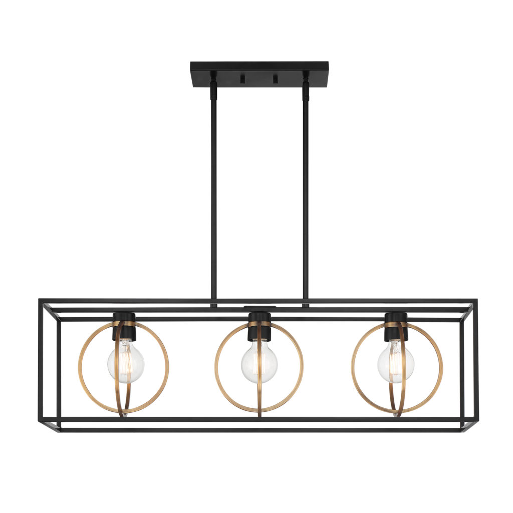 • Matte Black finish and Old Satin Brass accent add to modern decor