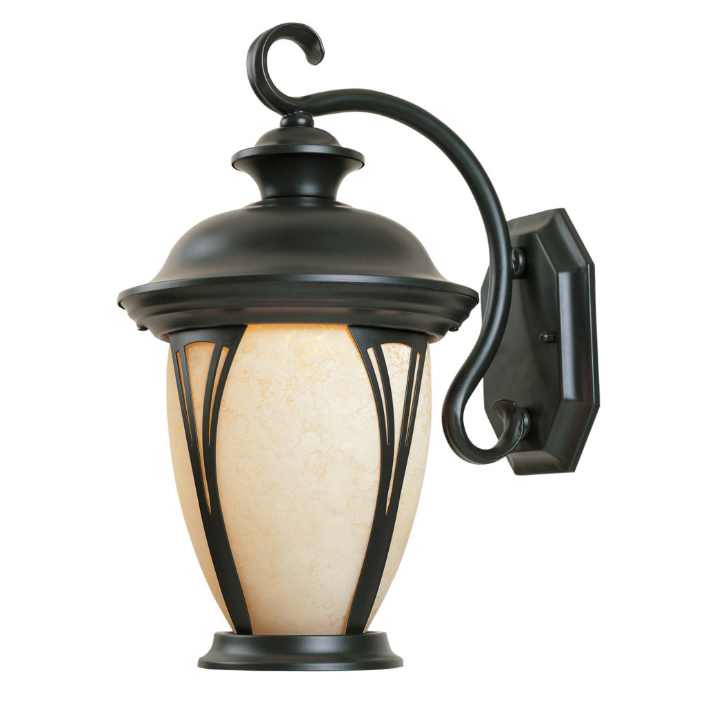• Amber Glass shade for diffuse outdoor illumination